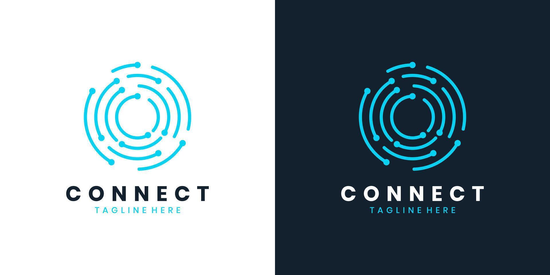 Connection logo design with circular network lines for futuristic digital technology Pro Vector