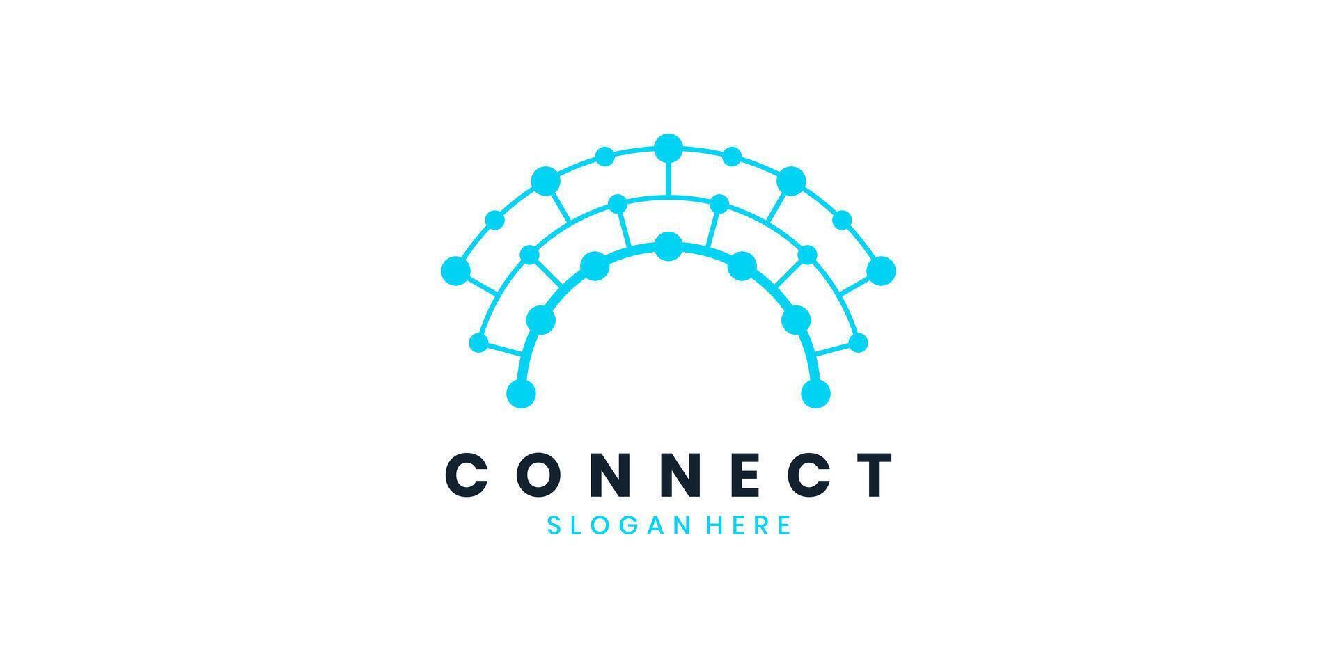 Technology connection network logo design with blue abstract dots and lines Pro Vector