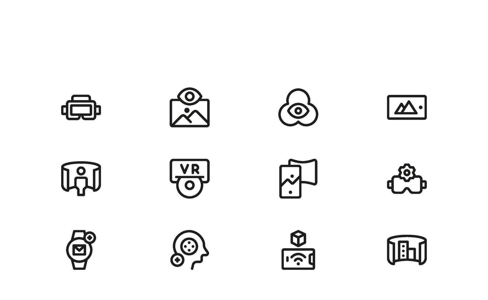 Immersive Experience Line Icons Including Spatial Mapping, Motion Tracking, and Virtual Simulation Symbols for Technology Branding Pro Vector