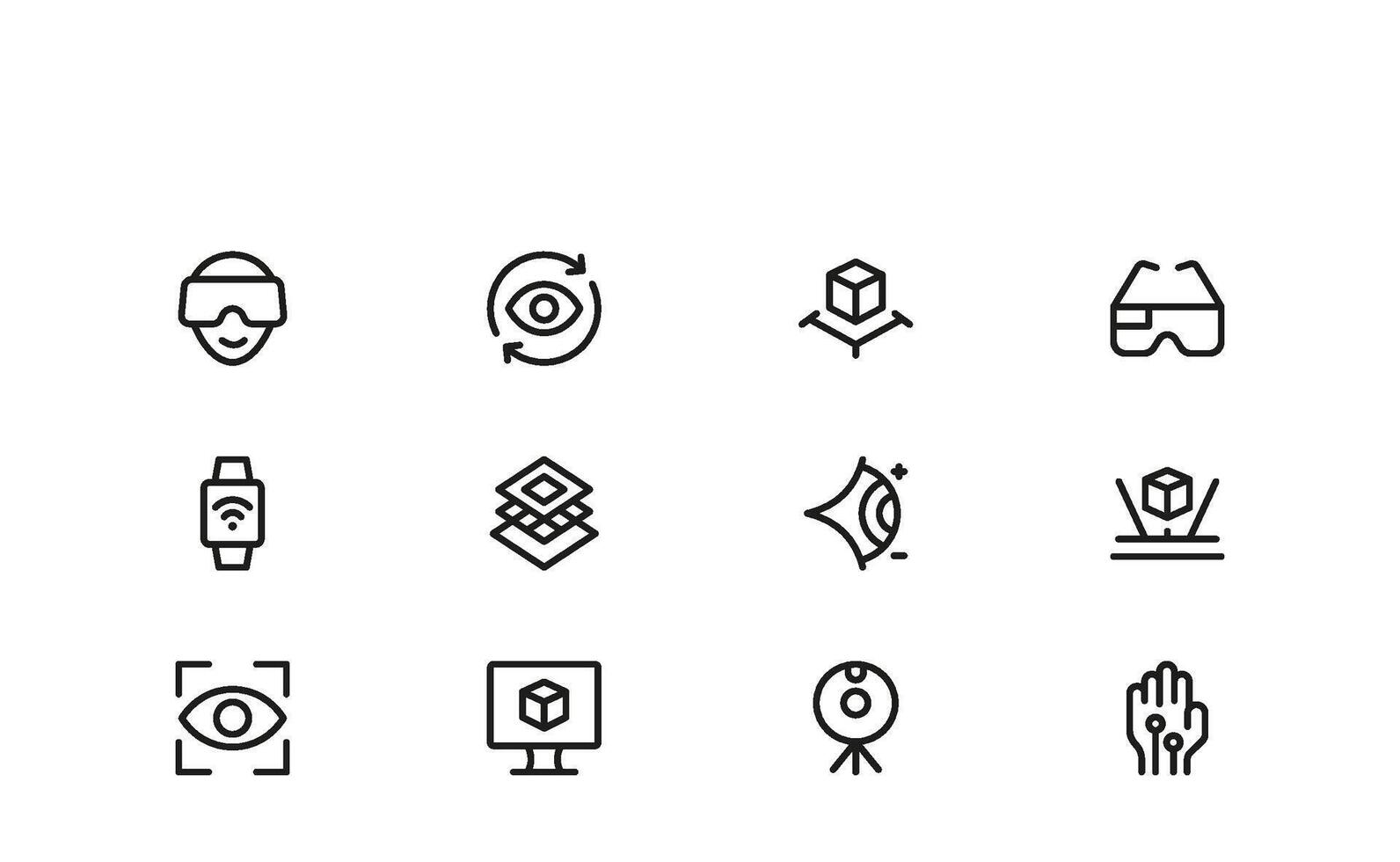 Advanced AR VR Line Icon Collection Featuring Modern Minimalist Style and Professional Unique Designs for Augmented Reality and Virtual Worlds Pro Vector