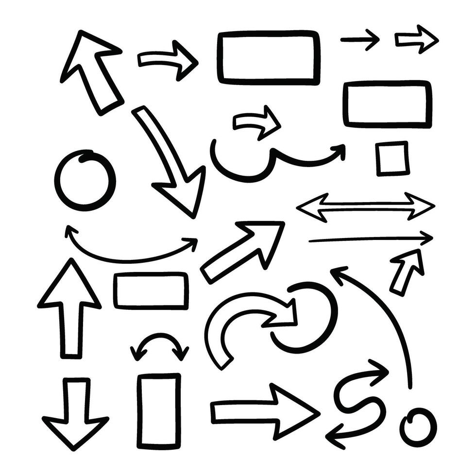 A collection of handdrawn arrows and shapes isolated on a white background, representing direction and choice Pro Vector