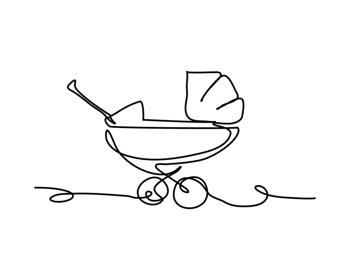 One line continuous of a baby stroller. Minimalist style illustration in white background. Pro Vector