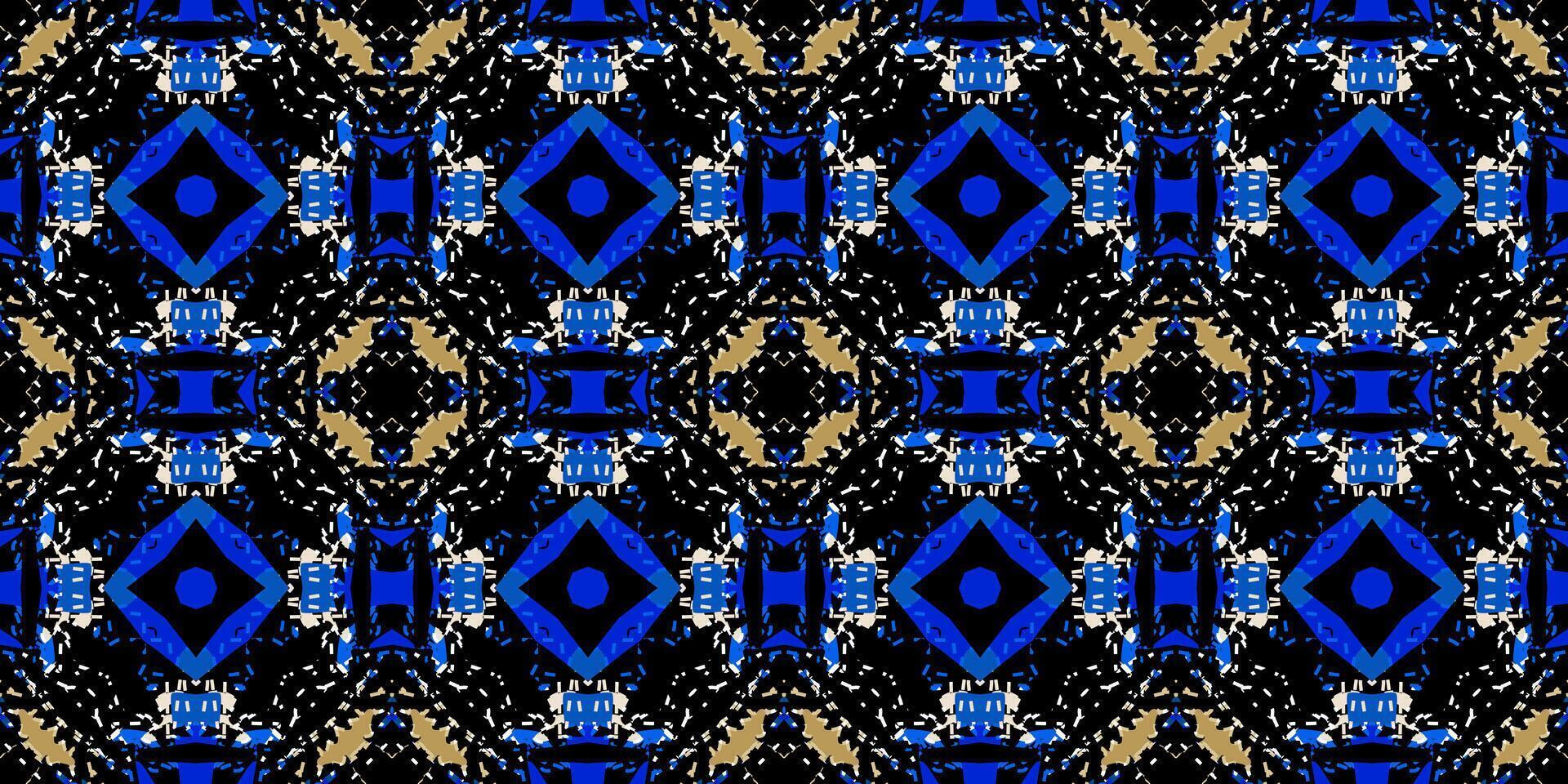 Modern Abstract Seamless Tile Design. Vibrant Blue and Black Abstract Symmetric Pattern. Geometric Digital Kaleidoscope Background. Retro 70s Abstract Design. Pro Vector