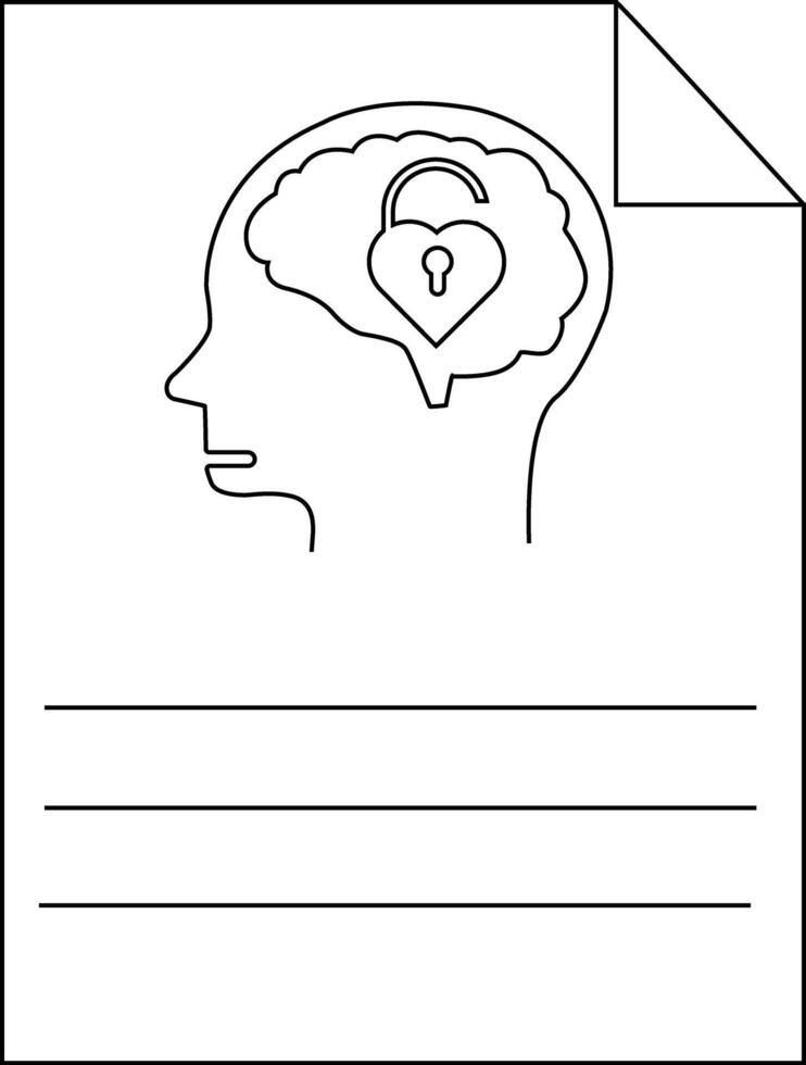 Outline of head brain containing a heartshaped lock with three horizontal lines at the bottom and a curled corner Pro Vector