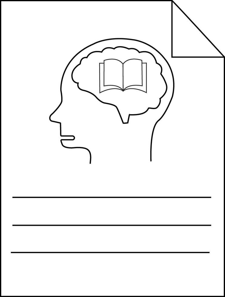 Outlined head with open book in brain on sheet with lines top corner folded Pro Vector