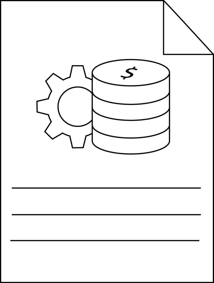 A document with a stack of money and a gear illustrated on top followed by three blank lines for writing Pro Vector