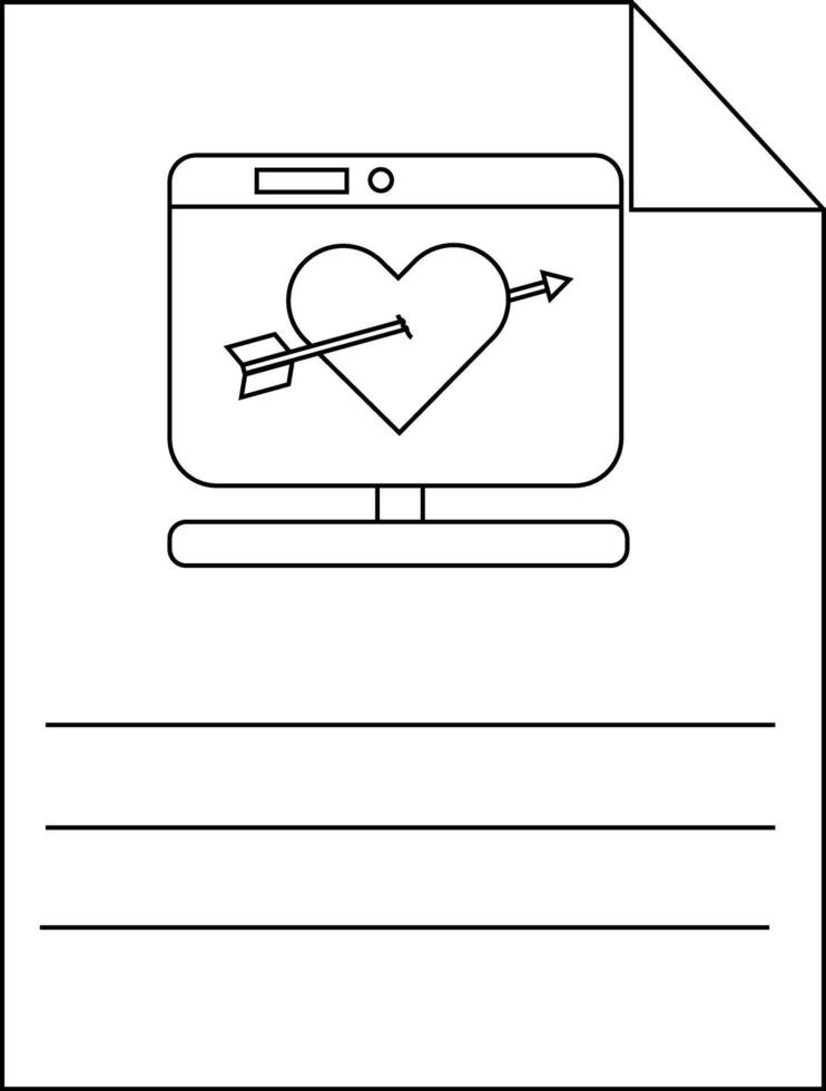 A computer monitor displays a heart pierced by an arrow atop three blank lines on a document with a folded corner Pro Vector
