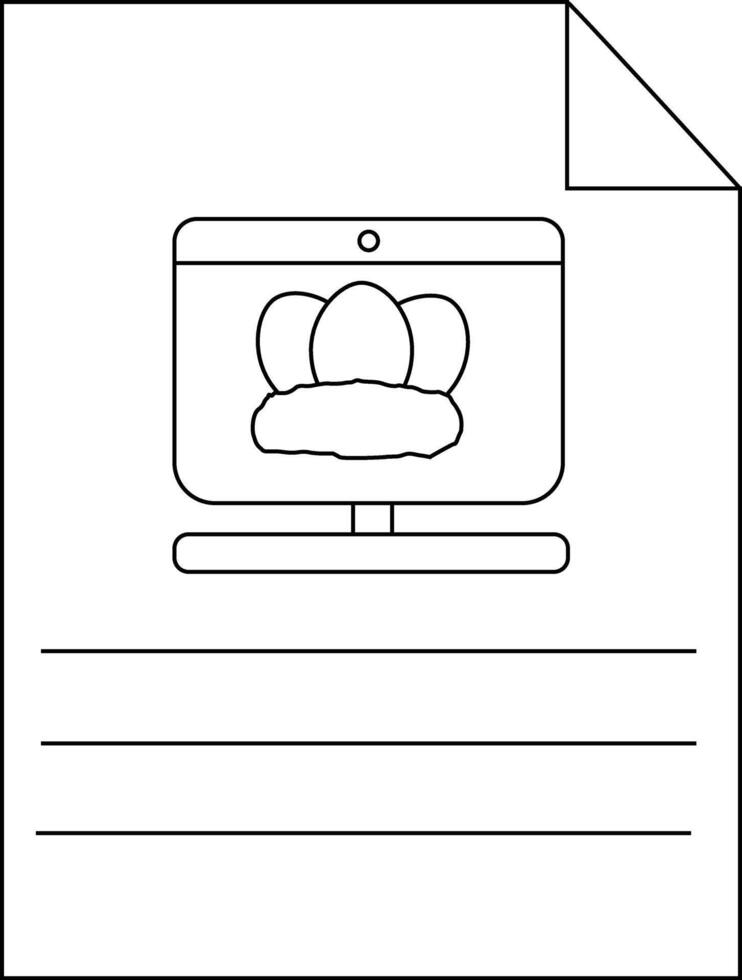 Computer showing eggs on screen sits atop lines on a white page with a folded corner Pro Vector