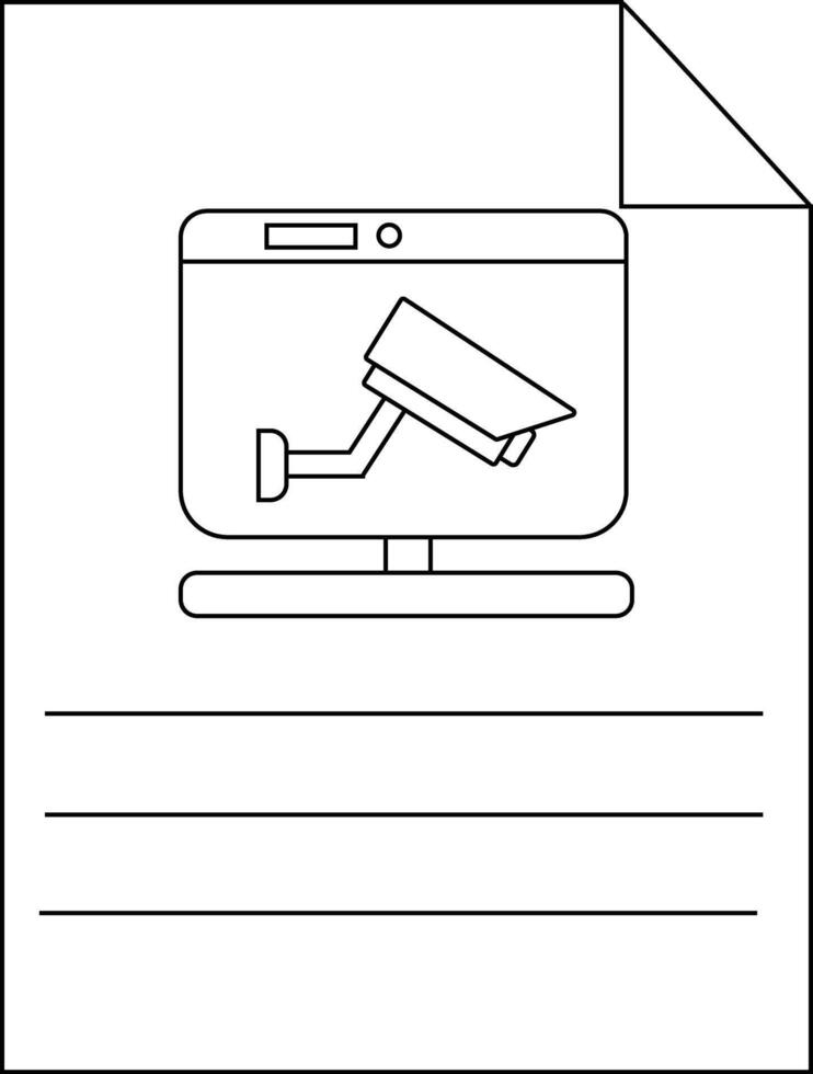 Outlined document depicting a monitor displaying a security camera Pro Vector