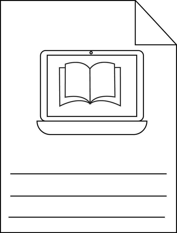 A digital image featuring a laptop displaying an open book on its screen with three lines below and a paper fold at the top right Pro Vector