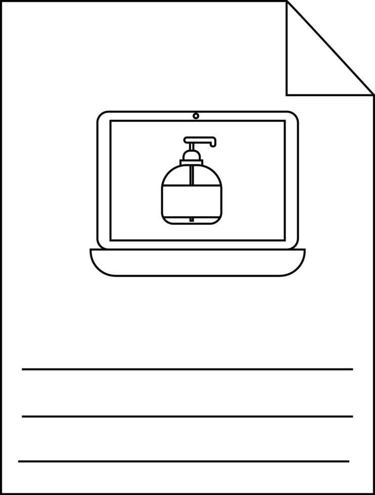 A document with a laptop displaying a hand sanitizer bottle and lines for writing Pro Vector