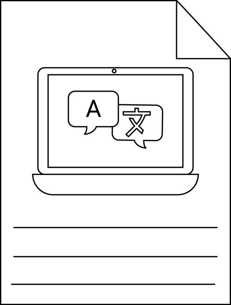 A document with a laptop screen showing translation bubbles and horizontal lines for text Pro Vector