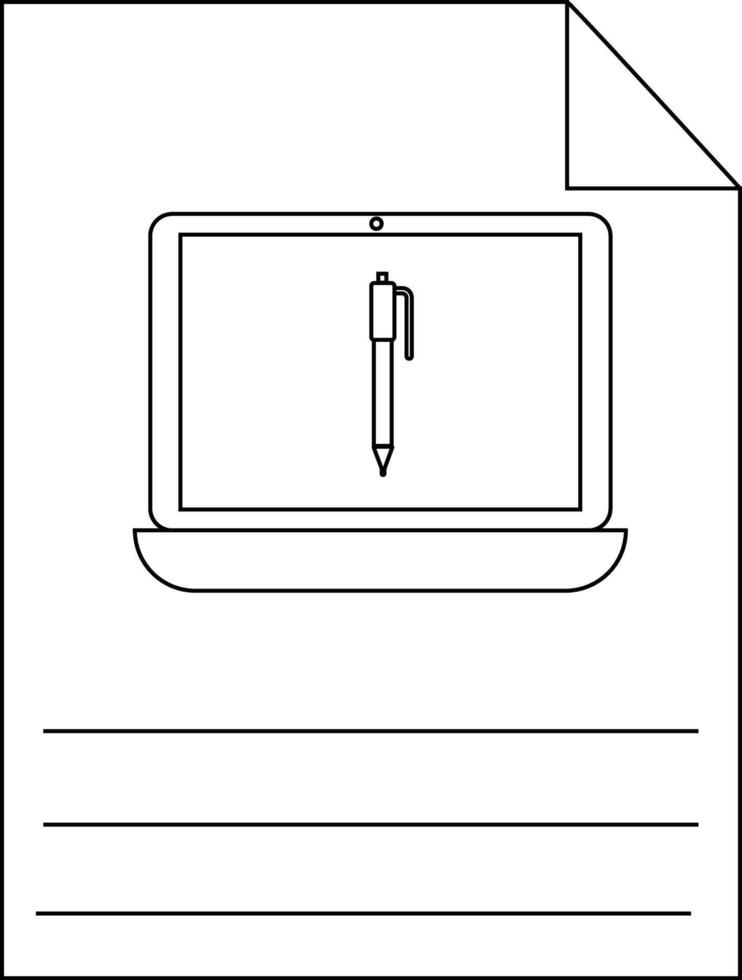 A laptop displayed on a sheet of paper with lines below and a folded corner Pro Vector