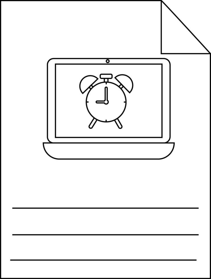 Page with laptop displaying alarm clock lines for notes and a folded corner Pro Vector