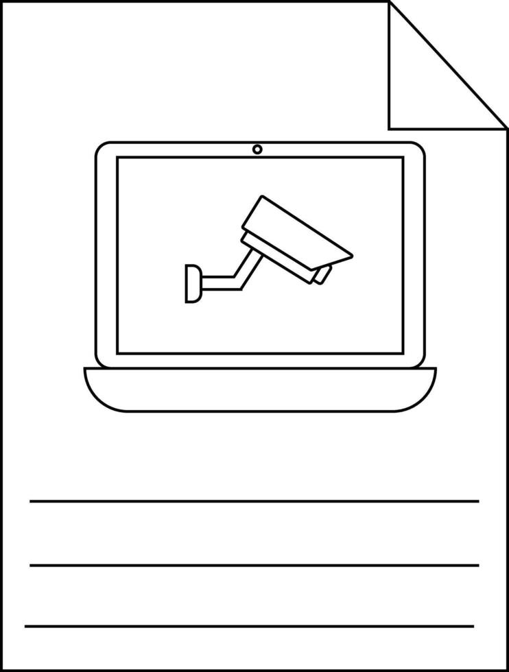 Paper with a laptop displaying a surveillance camera and lines for notes Pro Vector