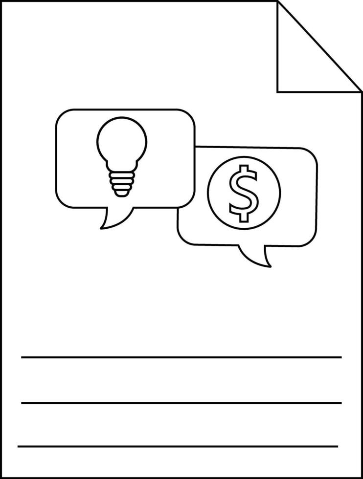 A document shows speech bubbles of a lightbulb dollar sign with lines for writing below Pro Vector
