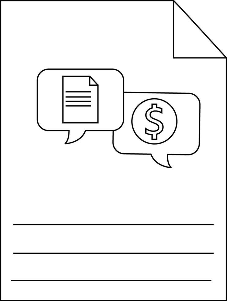 A document with two speech bubbles one with a document icon the other with a dollar sign and three horizontal lines below them Pro Vector
