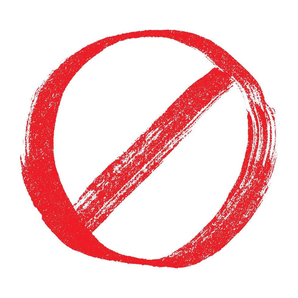 Hand drawn prohibition sign No entry symbol Red circle with cross line clipart in doodle style Ban Restriction Forbidden stop Single element for print, web, design restriction cross Pro Vector