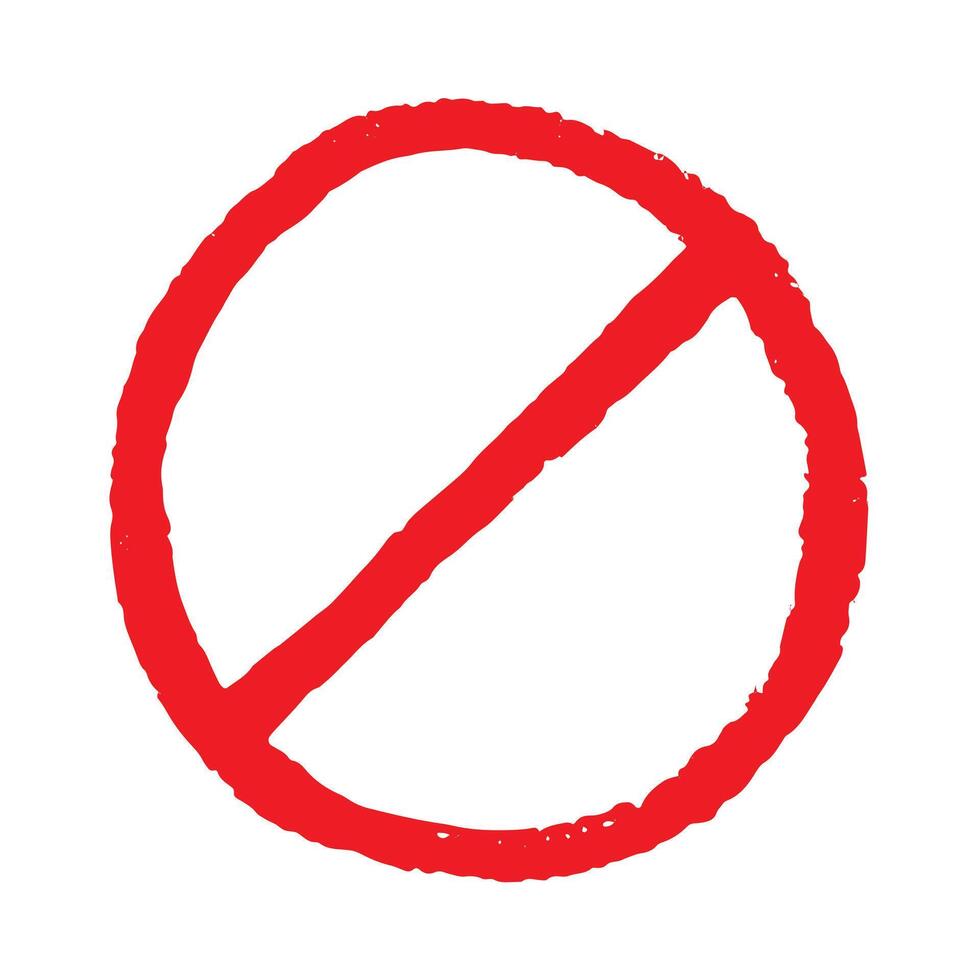 Hand drawn prohibition sign No entry symbol Red circle with cross line clipart in doodle style Ban Restriction Forbidden stop Single element for print, web, design restriction safety Pro Vector
