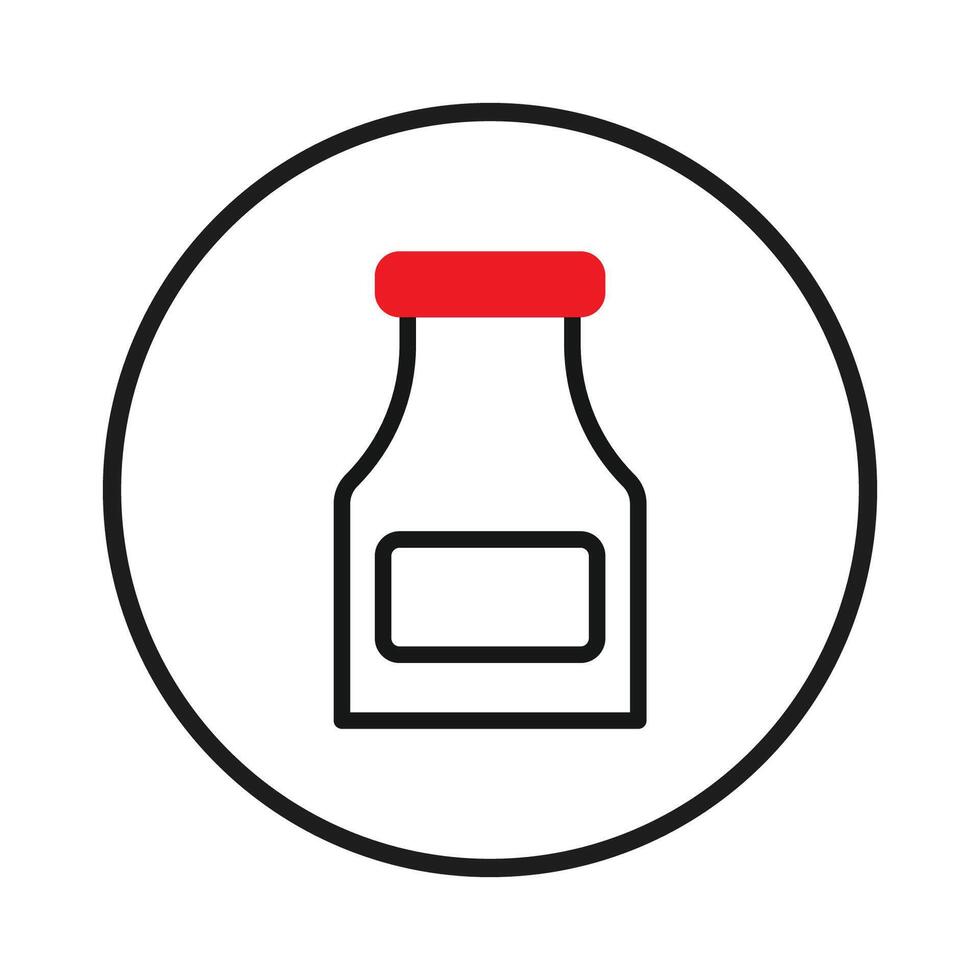 Conceptual condiment container graphic illustration with vivid red cap encased in simple circular Free Vector
