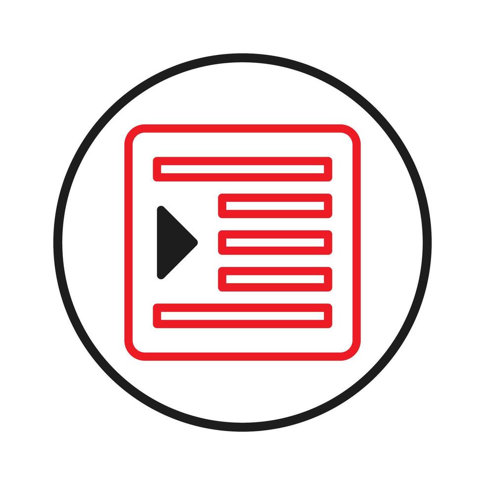Minimalist depiction of a digital play button overlayed on structured text within a circular frame vector