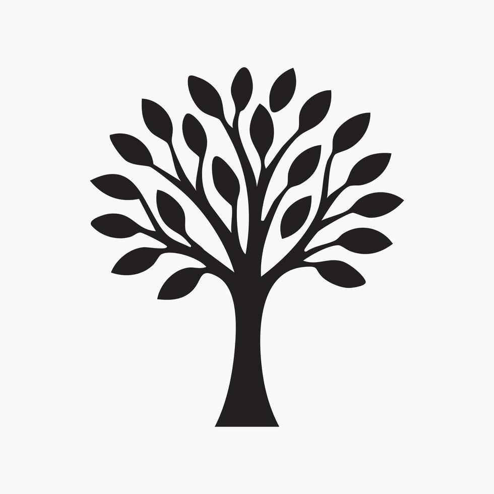 Stylized Tree Silhouette with Rounded Leaves Creating a Dense Canopy, Standing Tall Against a Plain Background Simple Yet Evocative Pro Vector