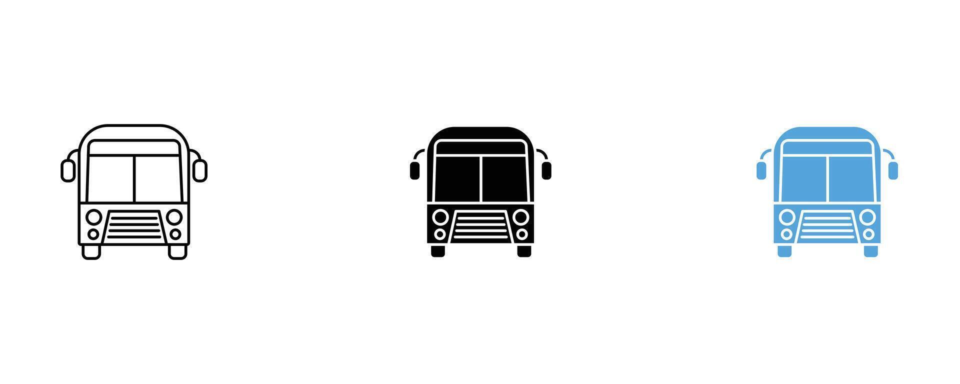 Bus front view icon set isolated on white background in line, solid and flat Pro Vector