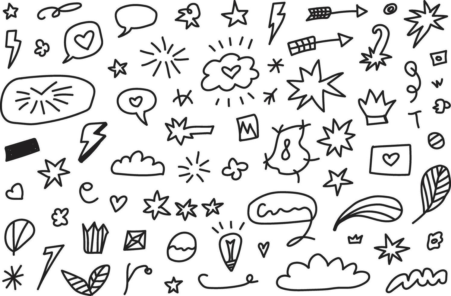 A set of doodles with various objects and symbols Pro Vector