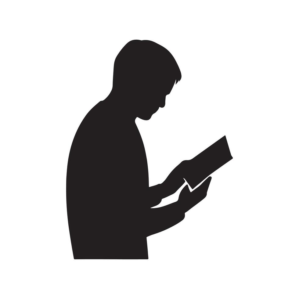 Silhouette of a man engrossed in reading a book, capturing the essence of knowledge and contemplation Pro Vector