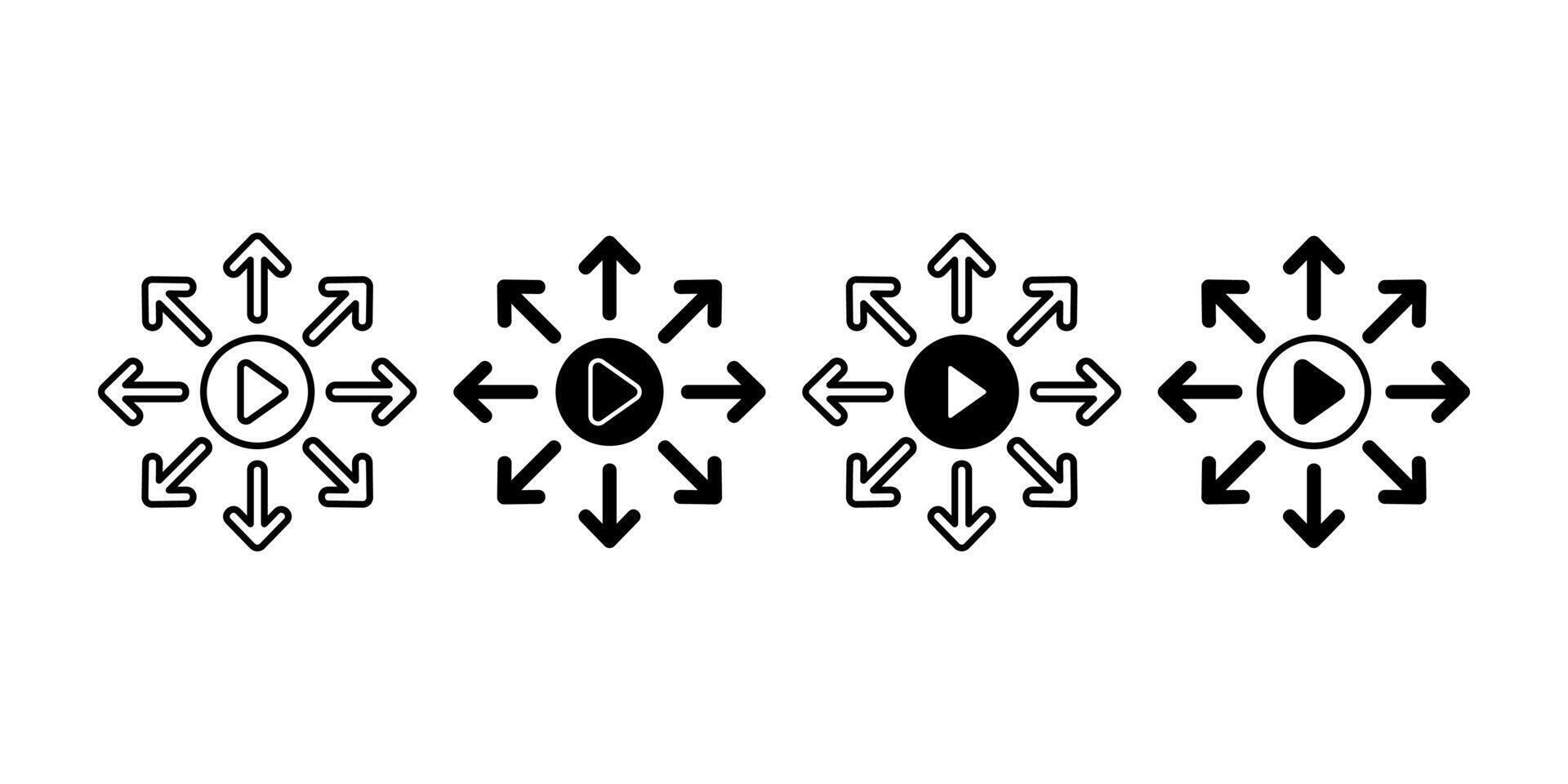 Content Distribution Play Button with Arrow Black Icon Bundle for Digital Media and Marketing Pro Vector