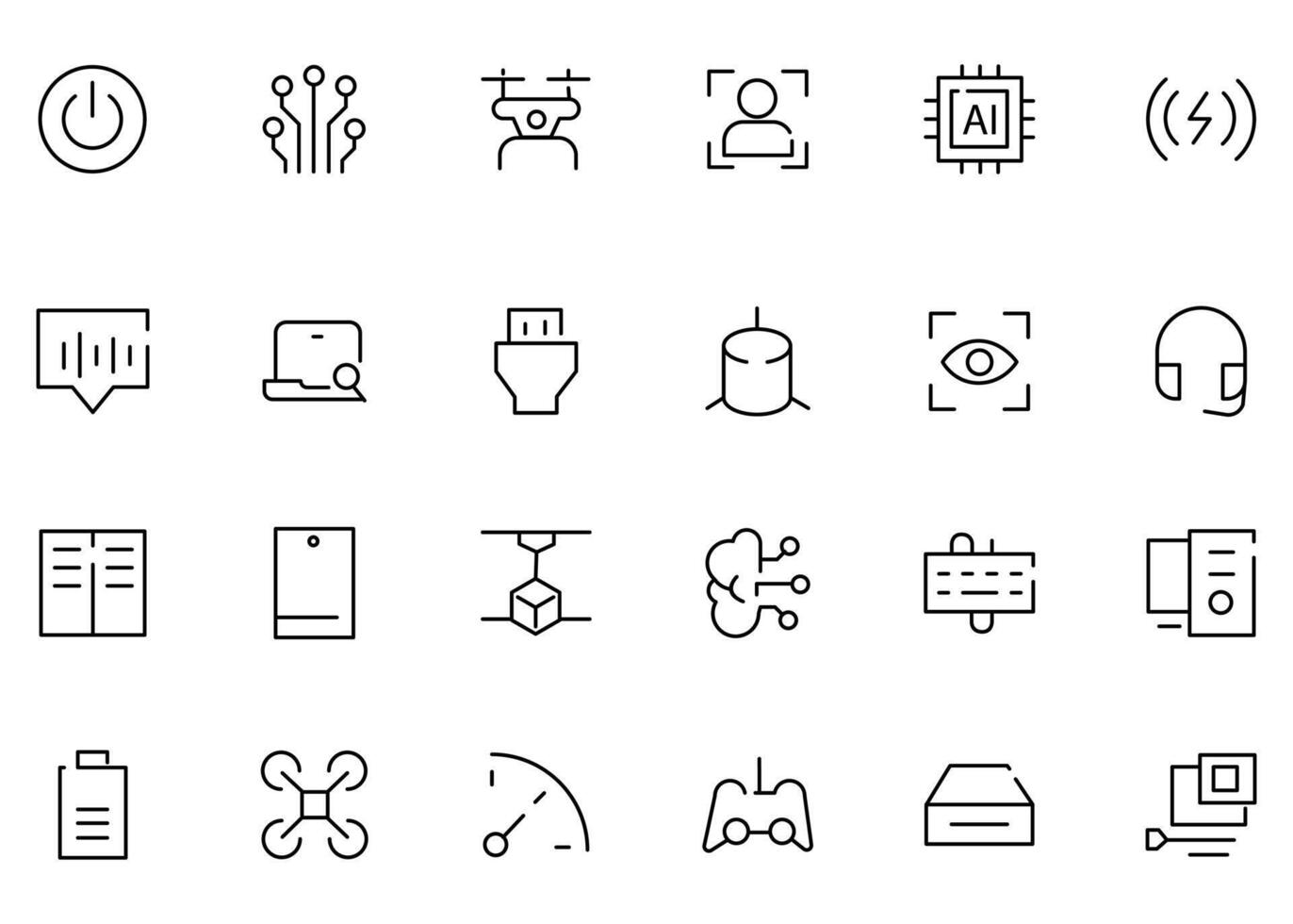 A set of 24 icons as power button, circuits Pro Vector
