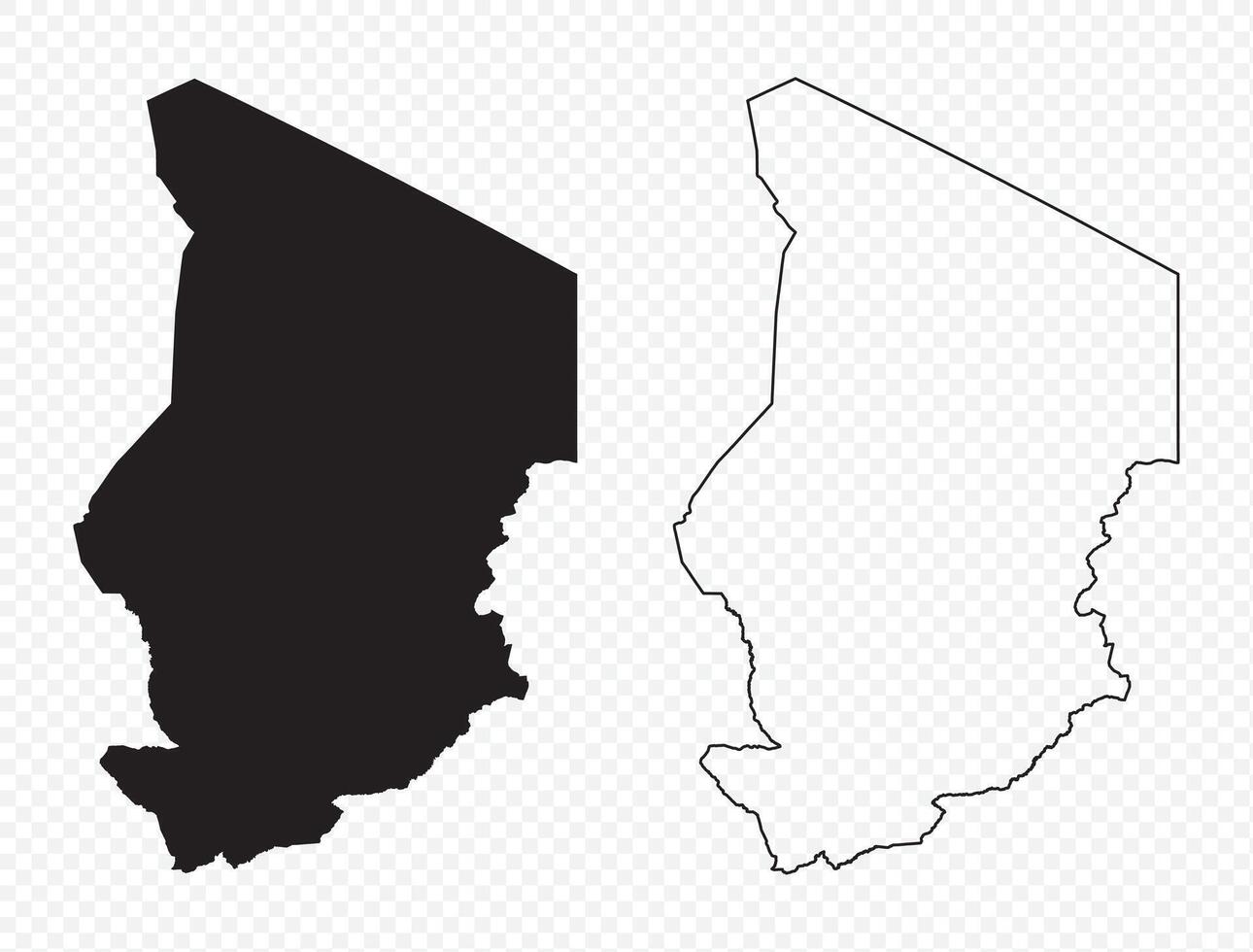 Simple black silhouette and outline map set of Chad, isolated on transparent background for design Pro Vector