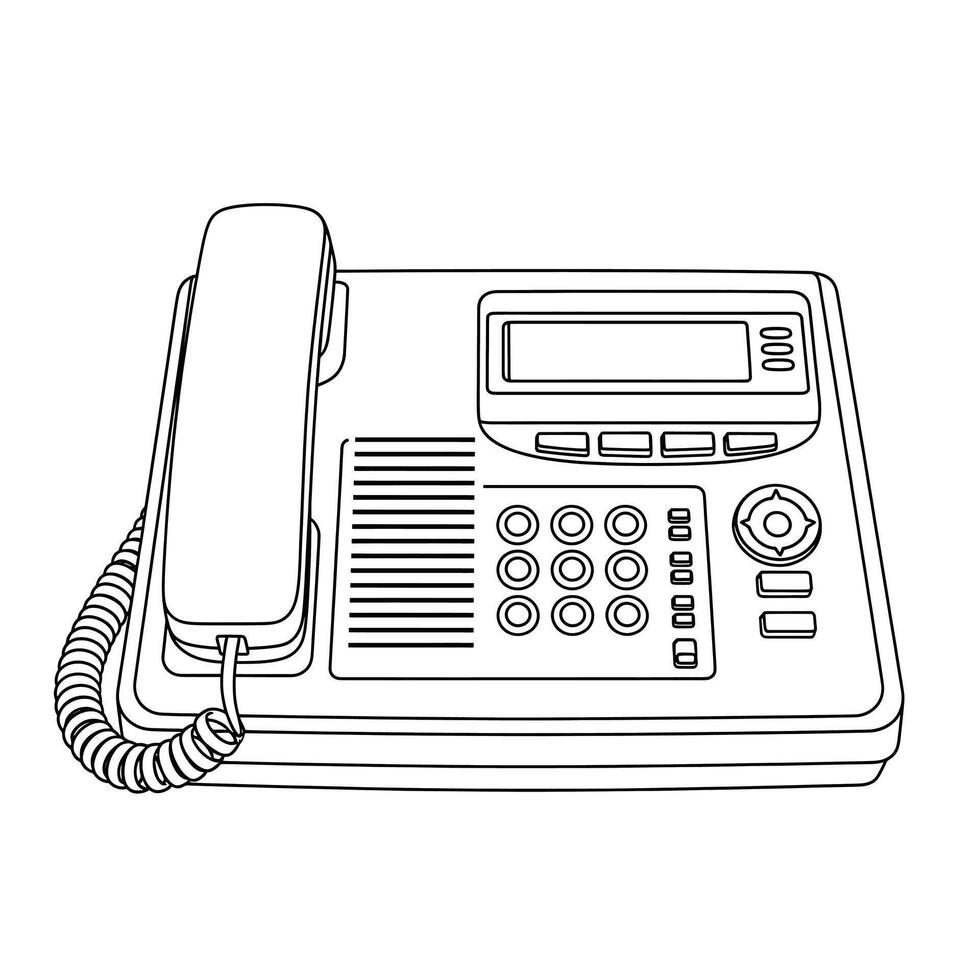 A line drawing of a modern office telephone with a handset, keypad, and display screen Pro Vector