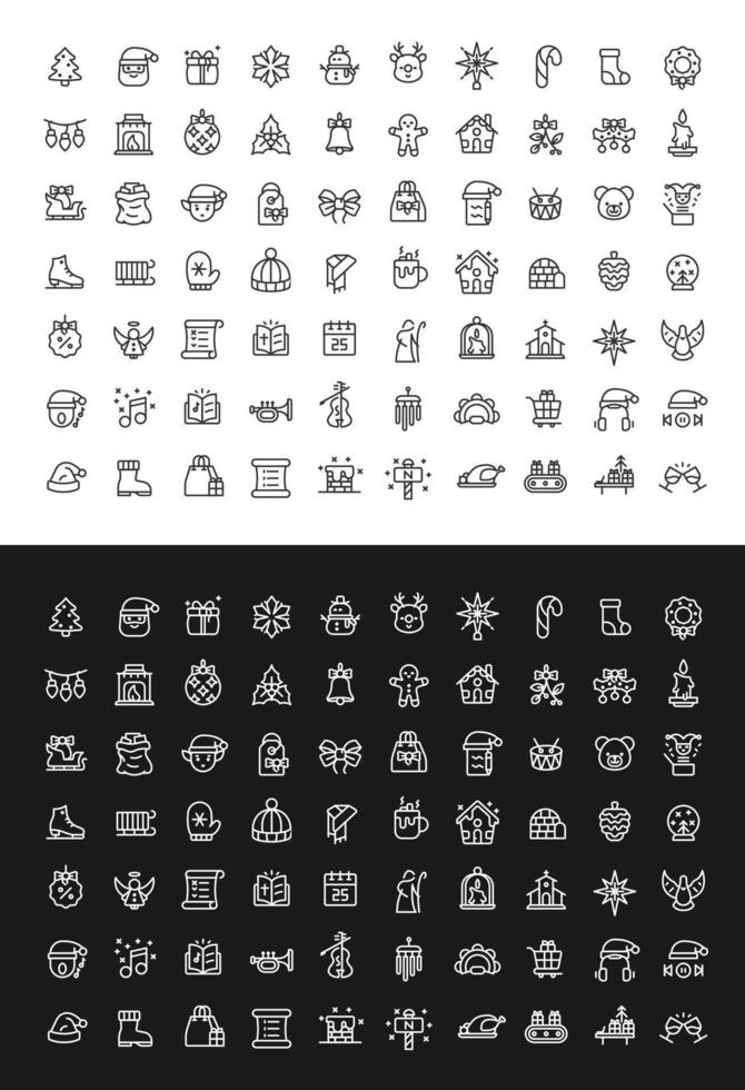 Christmas season line ui icons set for light and dark mode. New year festive party. Magic winter holiday. outline symbols iconography. User interface elements linear, pixel perfect Pro Vector