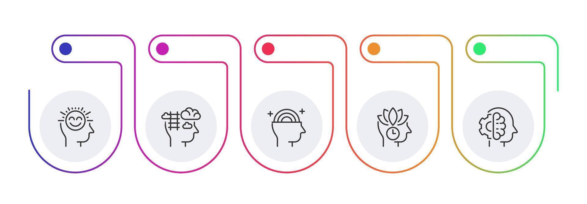 Soft skills development infographic gradient line. Working on self confident improvement. Psychology. Editable thin line icons diagram process with 5 steps Pro Vector