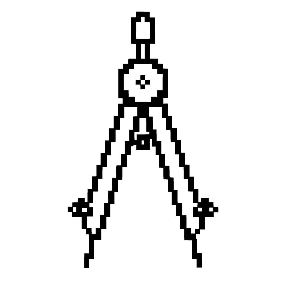 Pixel art drawing compass minimalist black and white geometric tool, precision measurement for mathematics and architecture Pro Vector
