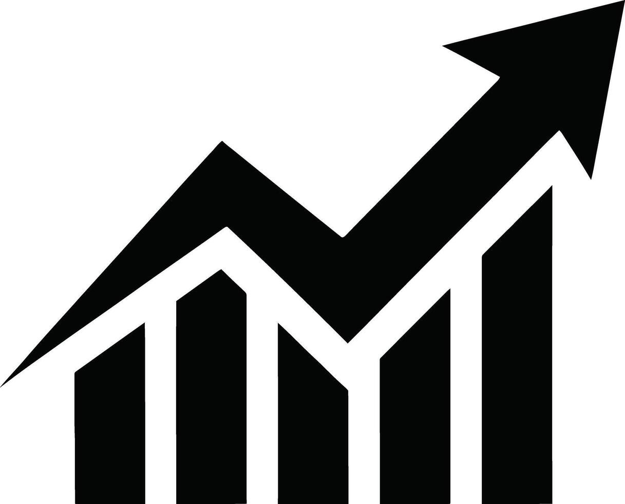 Black graph with arrow pointing up isolated on white background Pro Vector