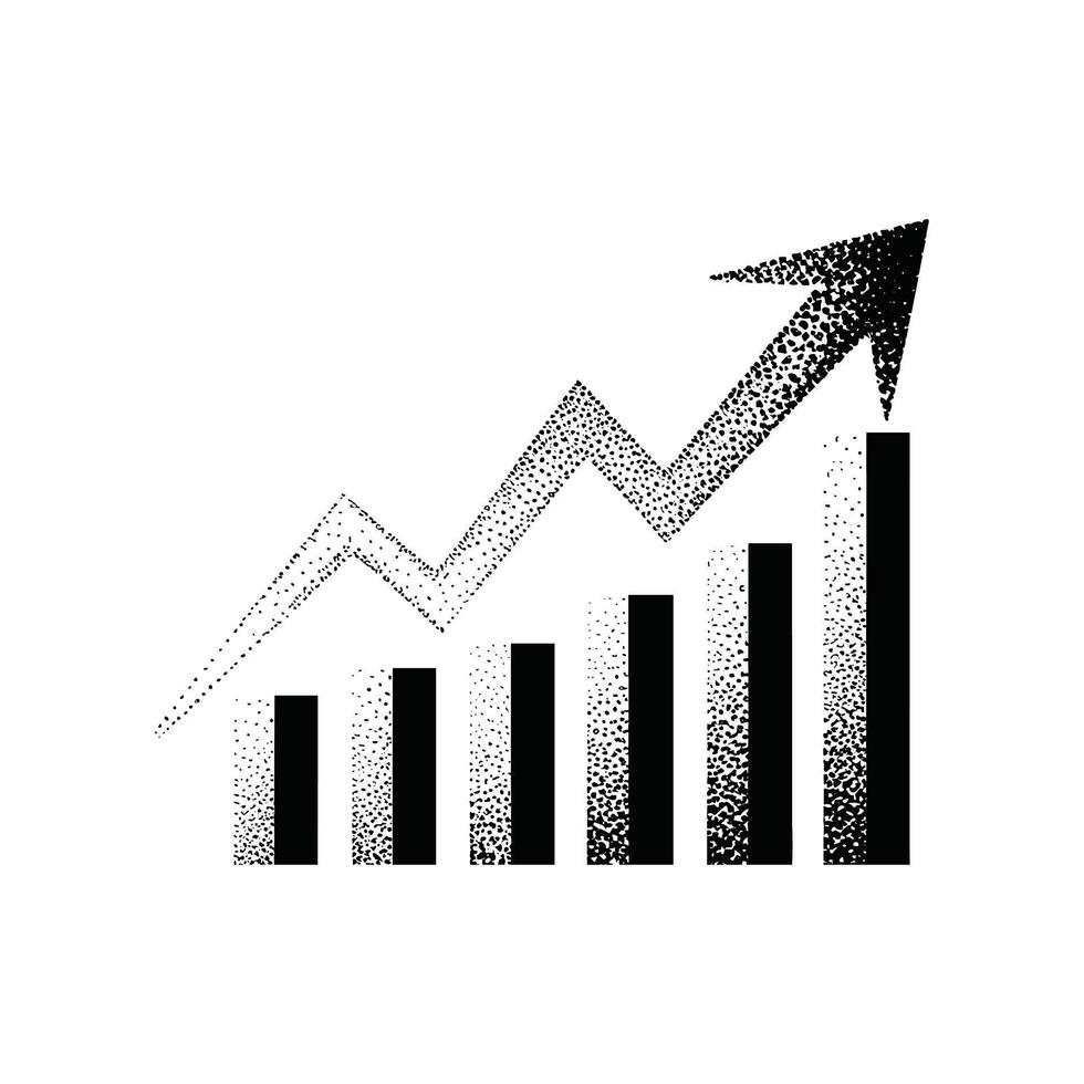 Black and white bar graph with stippled arrow pointing upwards on a white background bar chart upward trend Pro Vector