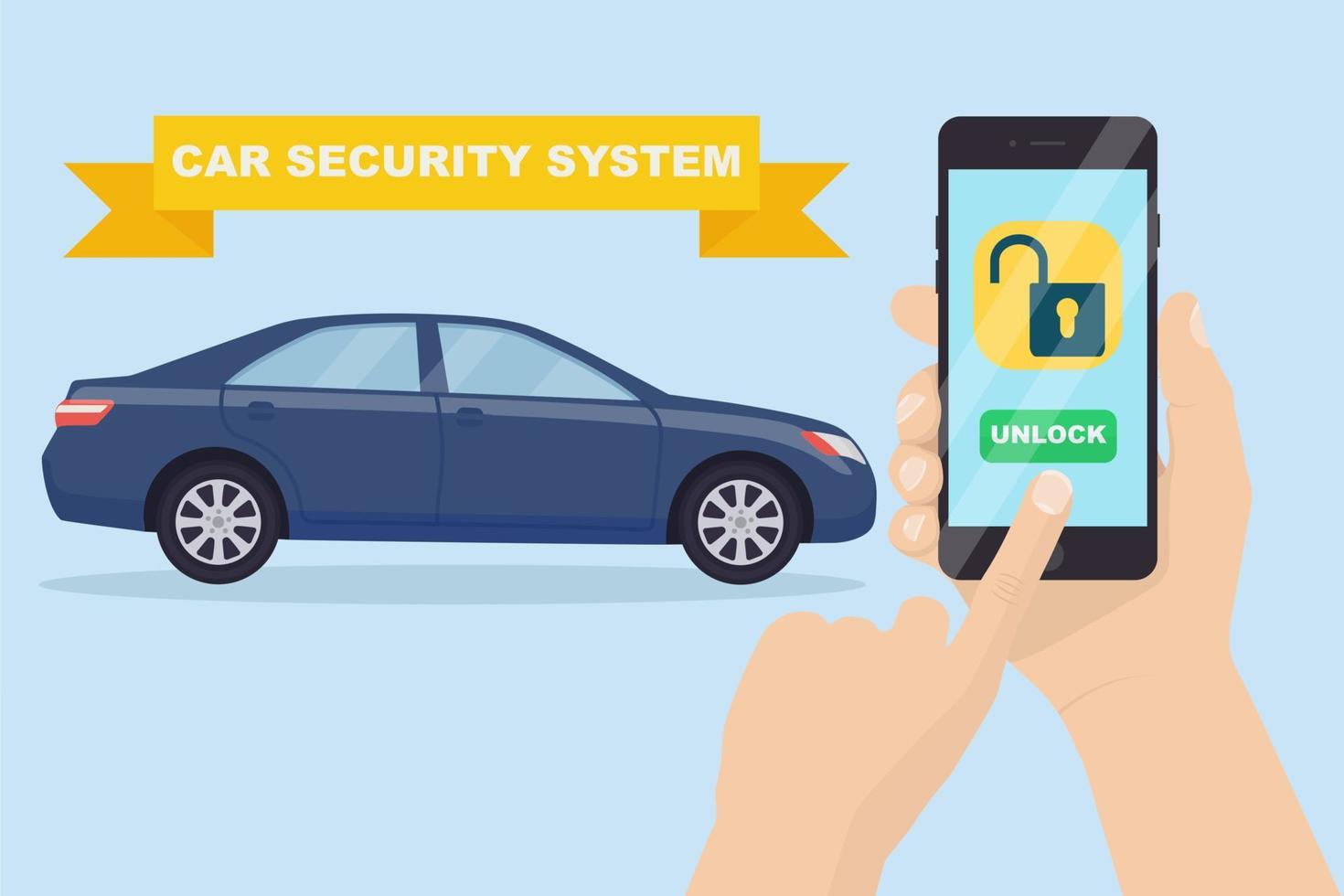 Smart protection of the car key at a distance. Automobile wireless mobile security alarm system with remote control on smartphone Pro Vector