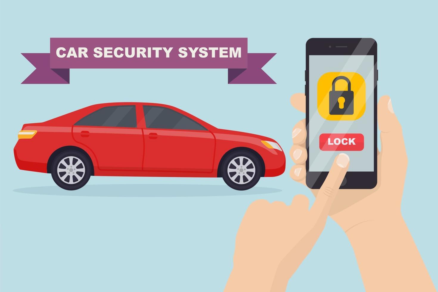 Smart protection of the car key at a distance. Automobile wireless mobile security alarm system with remote control on smartphone. Vector design Pro Vector