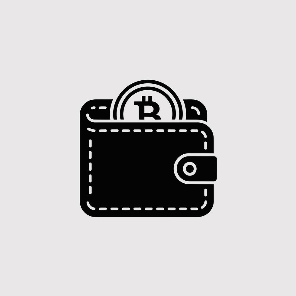 Black and White Minimalist Illustration of a Closed Wallet Containing a Single Bitcoin Cryptocurrency Coin Simple Flat Design Icon for Finance and Cryptocurrency Related Projects Pro Vector