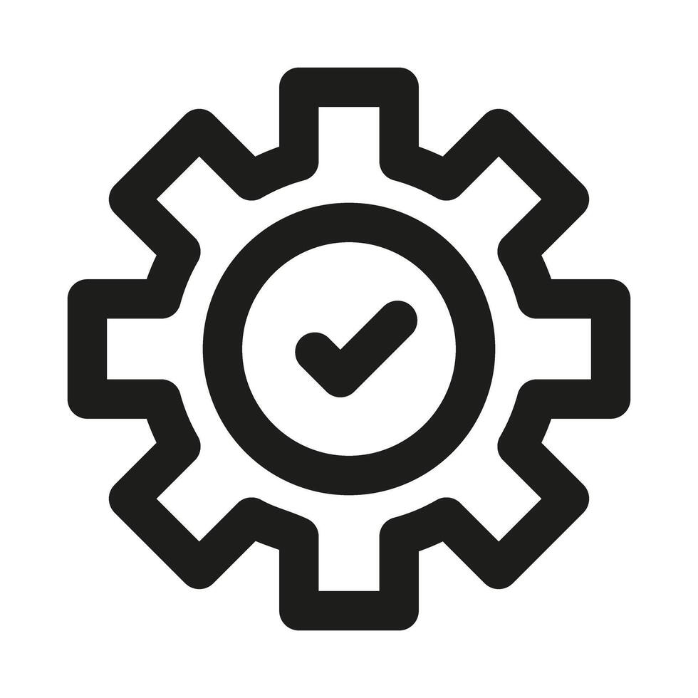 Professional Gear with Checkmark icon representing verified settings, configuration, and task completion Pro Vector