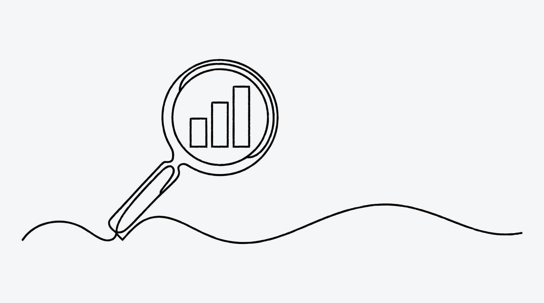 Continuous Line Drawing of Magnifying Glass with Increasing Bar Graph Symbol Pro Vector
