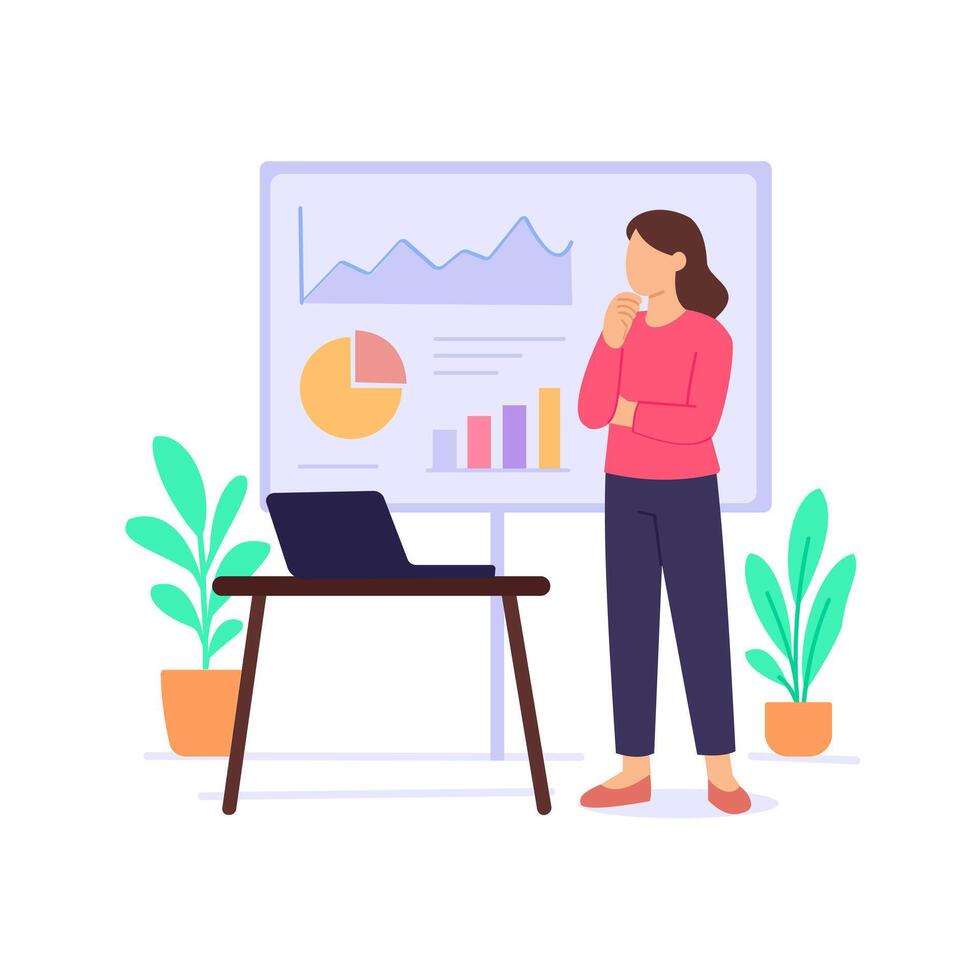 Checking Analytics, reviewing social media performance metrics Pro Vector