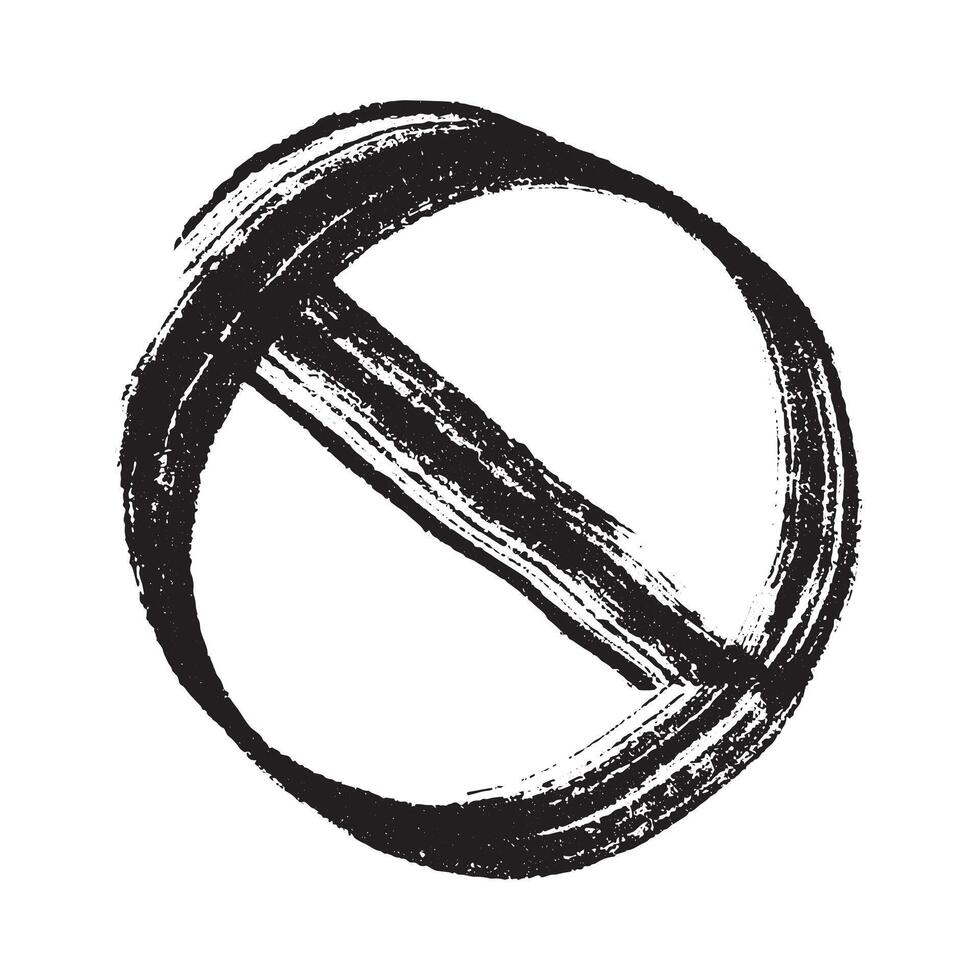 Hand drawn prohibition sign No entry symbol Black circle with cross line clipart in doodle style Ban Restriction Forbidden stop Single element for print, web, design forbidden limit Pro Vector
