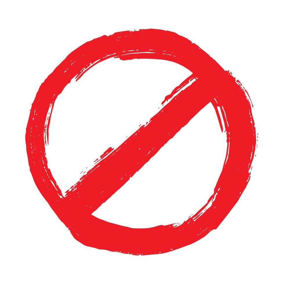 Hand drawn prohibition sign No entry symbol Red circle with cross line clipart in doodle style Ban Restriction Forbidden stop Single element for print, web, design forbidden attention Pro Vector
