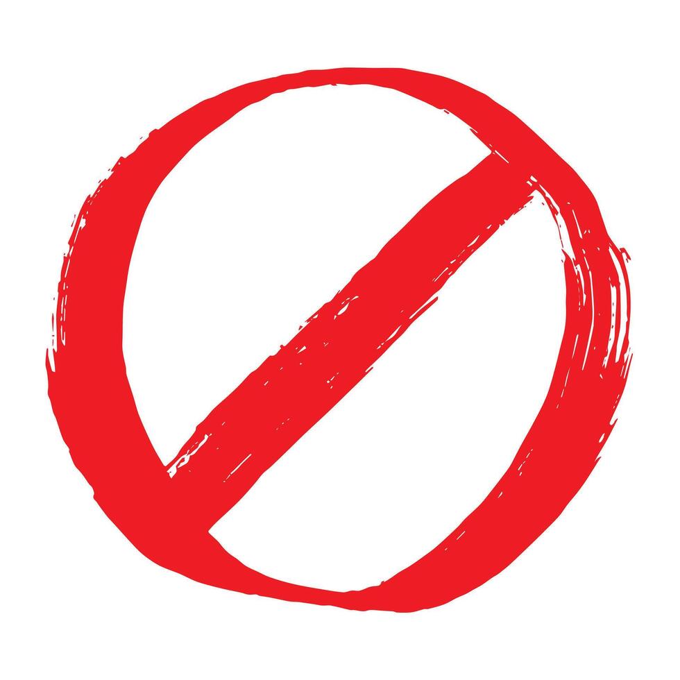 forbidden alert Hand drawn prohibition sign No entry symbol Red circle with cross line clipart in doodle style Ban Restriction Forbidden stop Single element for print, web, design Pro Vector