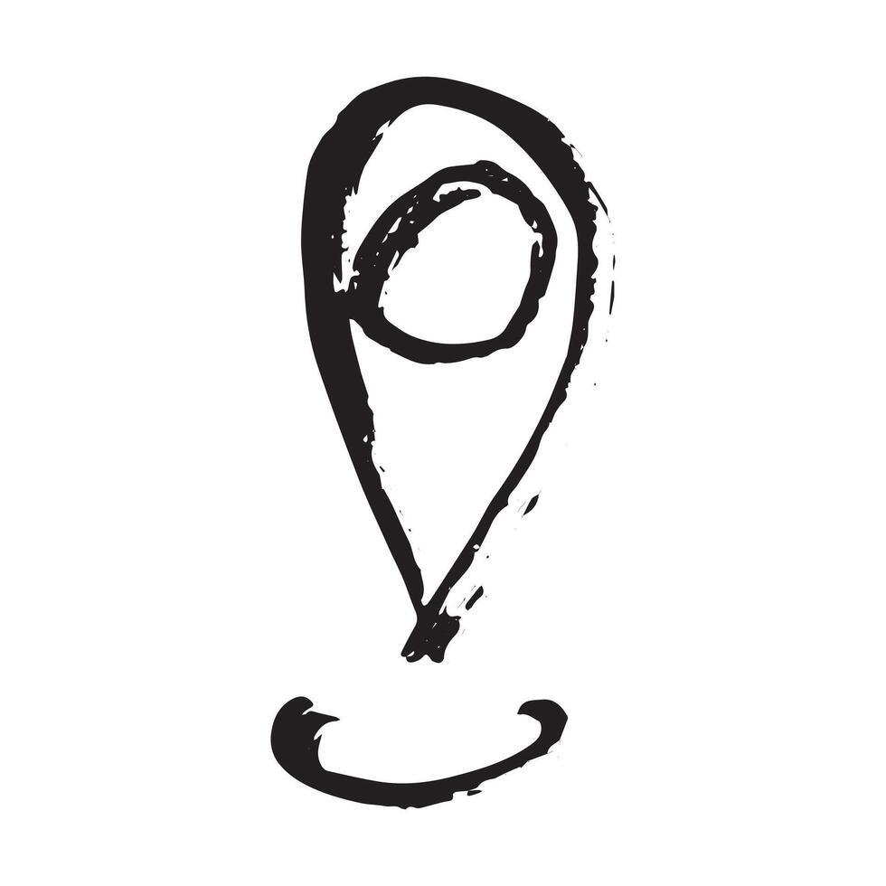 Hand drawn map pin Map marker pointer sign GPS and mapping tools Location pin symbol Pinpoint clipart in doodle style Single element for web, design location ink Pro Vector