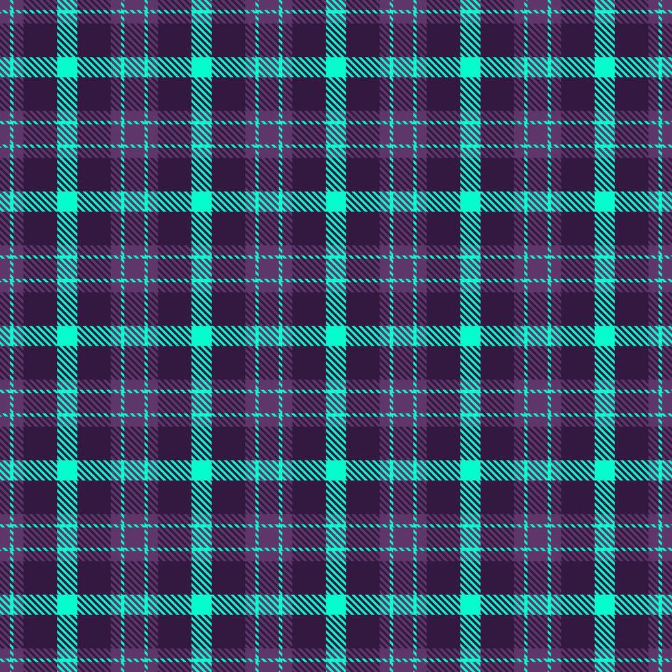 Seamless plaid pattern in purple and cyan. Versatile for backgrounds, textiles, or creative projects. Evokes tradition and style. Trendy, modern design element. Pro Vector