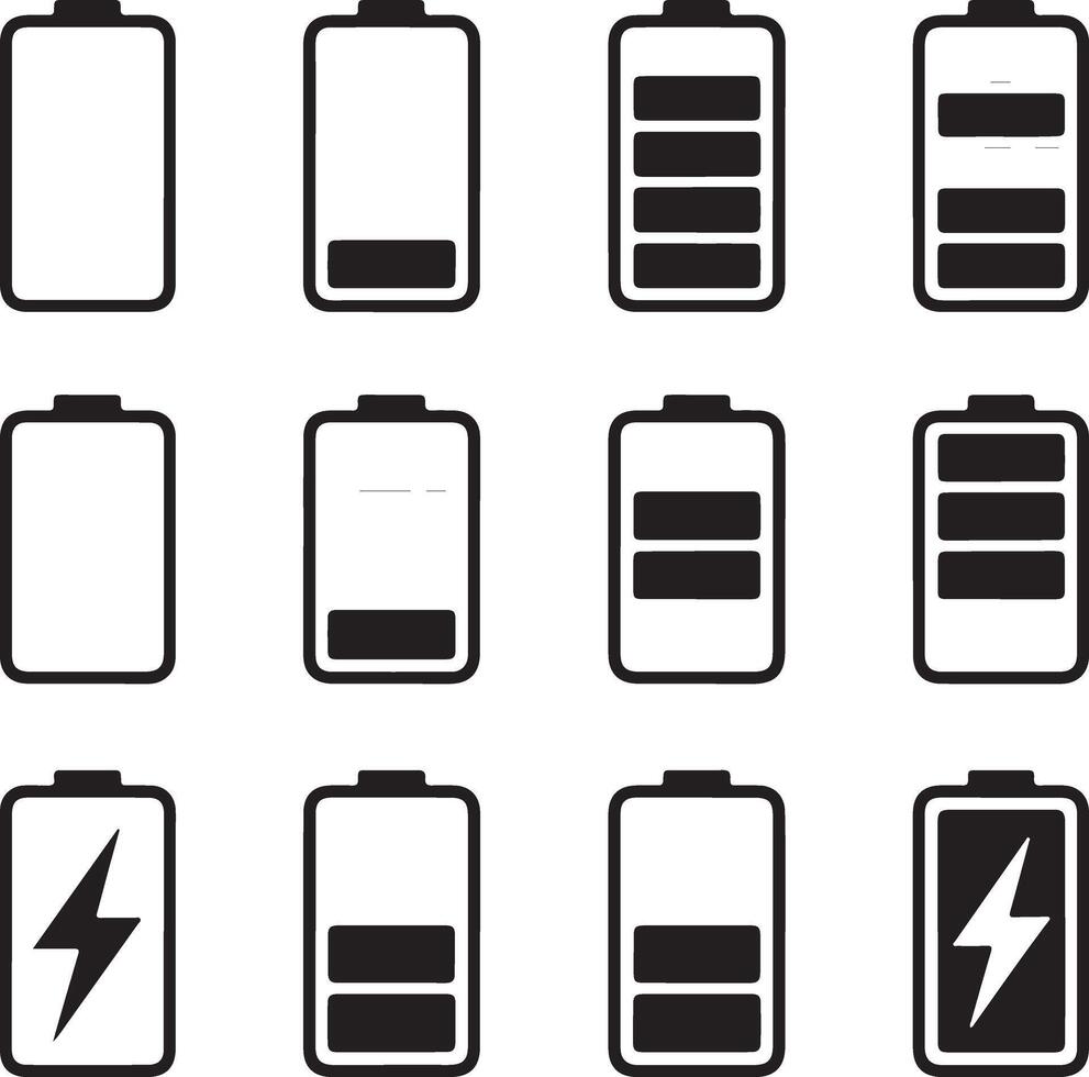 Battery charge level icons showing full to empty power indicators Pro Vector